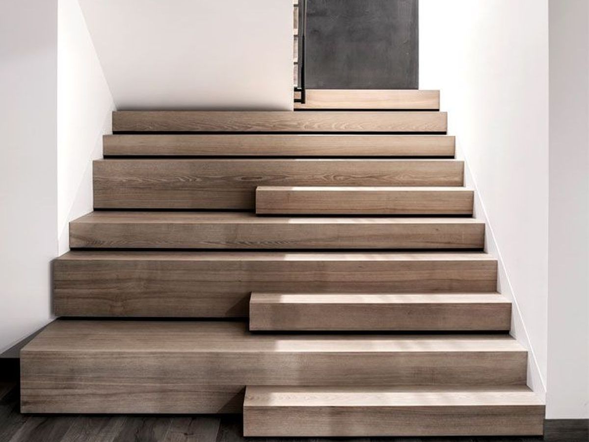 Второй интересный вариант дизайна — первые ступени лестницы оформить как подиум, широкими, не стандартными по размеру, ступенями. Такая лестница как бы приглашает наверх, распахивает свои объятия навстречу жителю. Это видно на следующем фото.