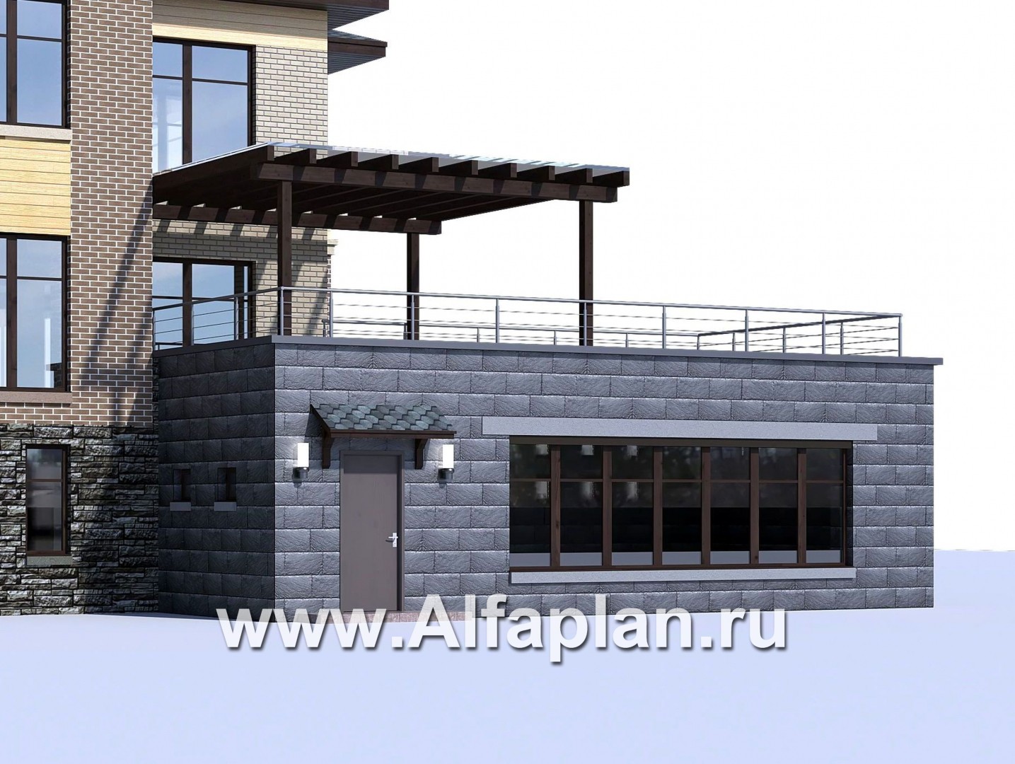 296B-S Проект бассейна (пристройка к коттеджу), с террасой на крыше
