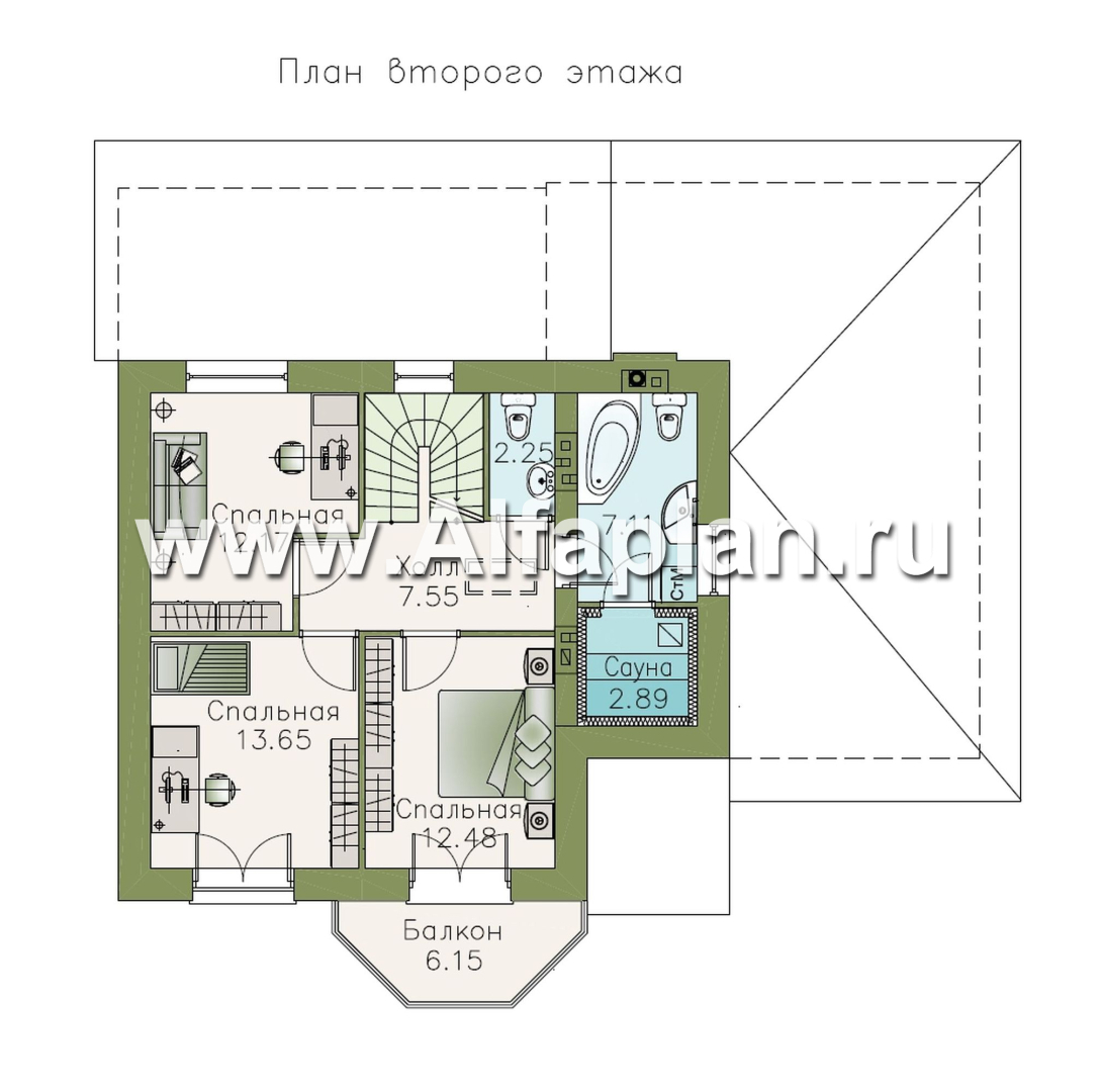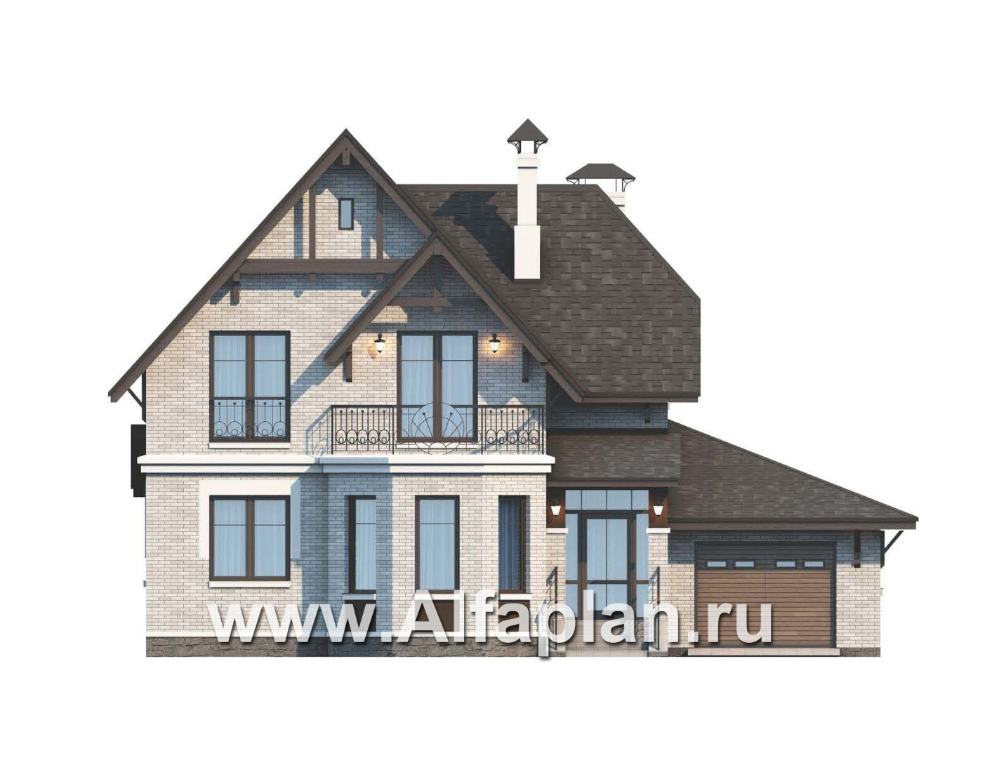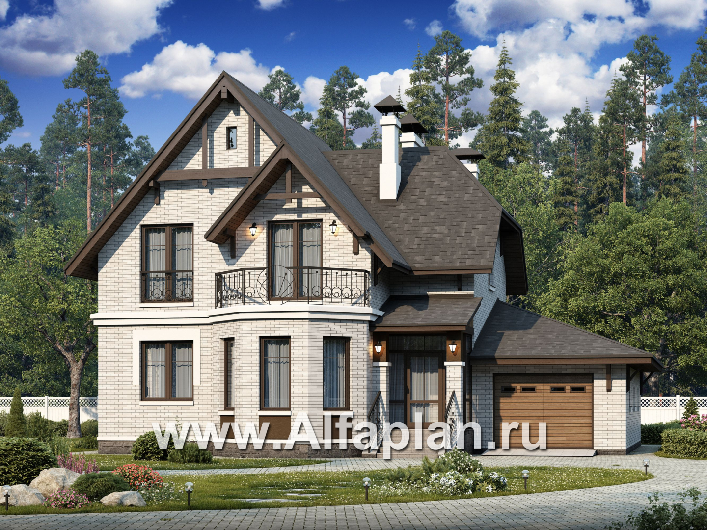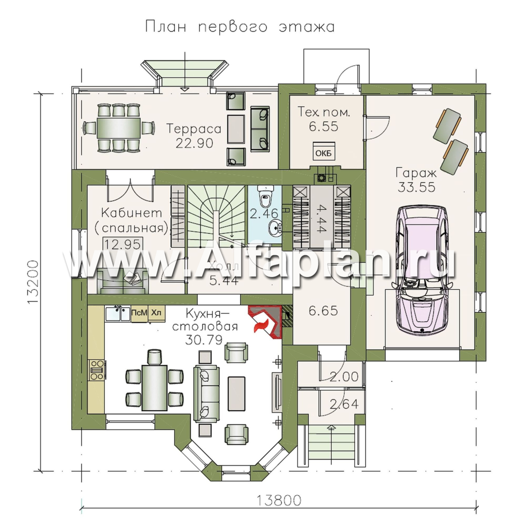 102B-2 Проект двухэтажного дома из газобетона «Шевалье» с кабинетом на 1 эт, с эркером и гаражом