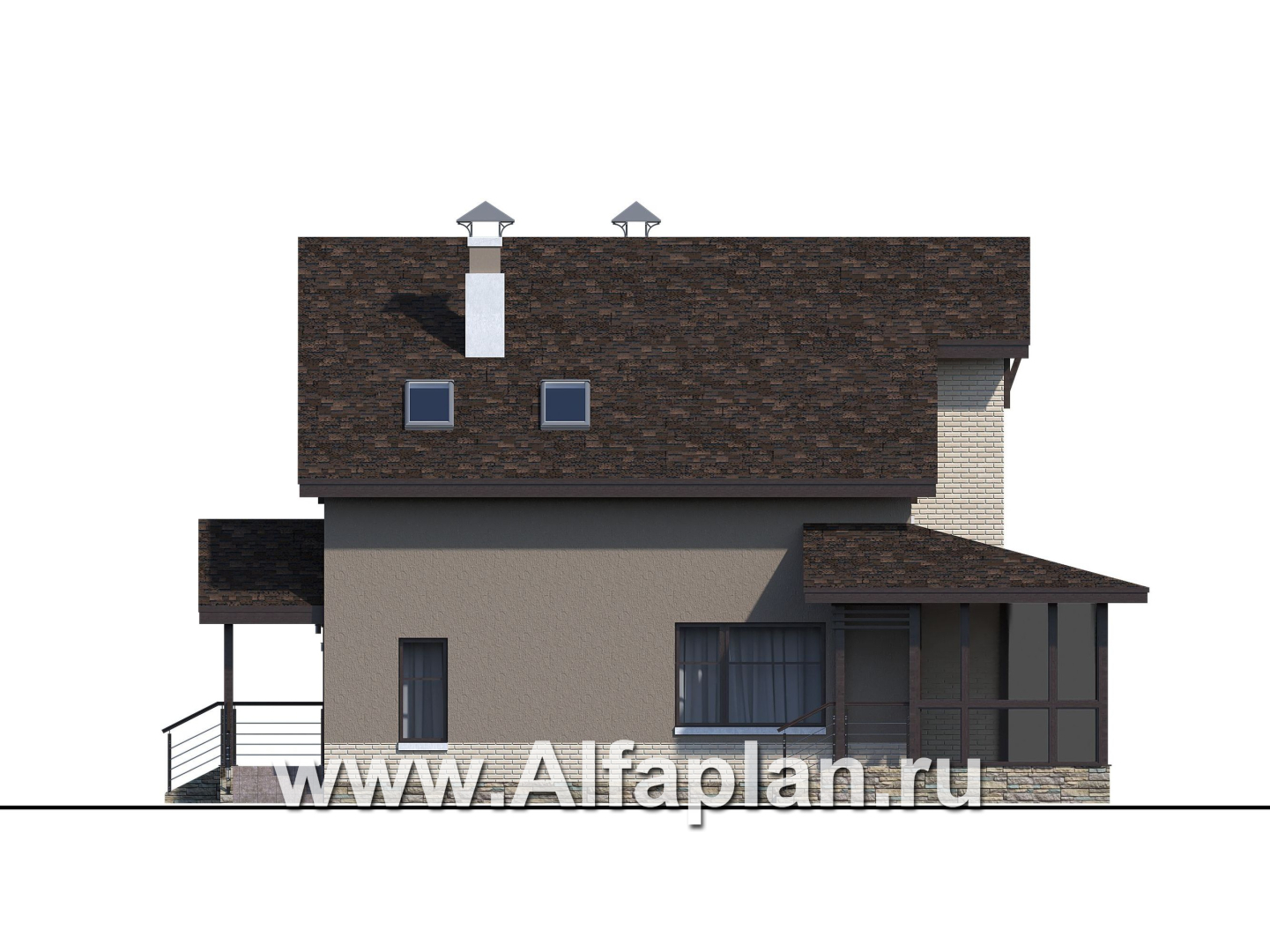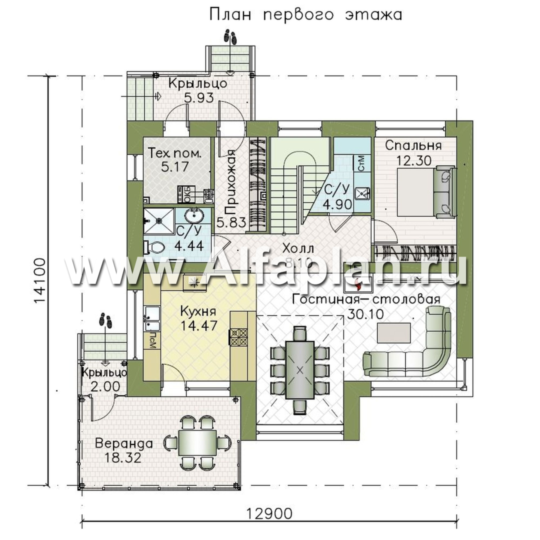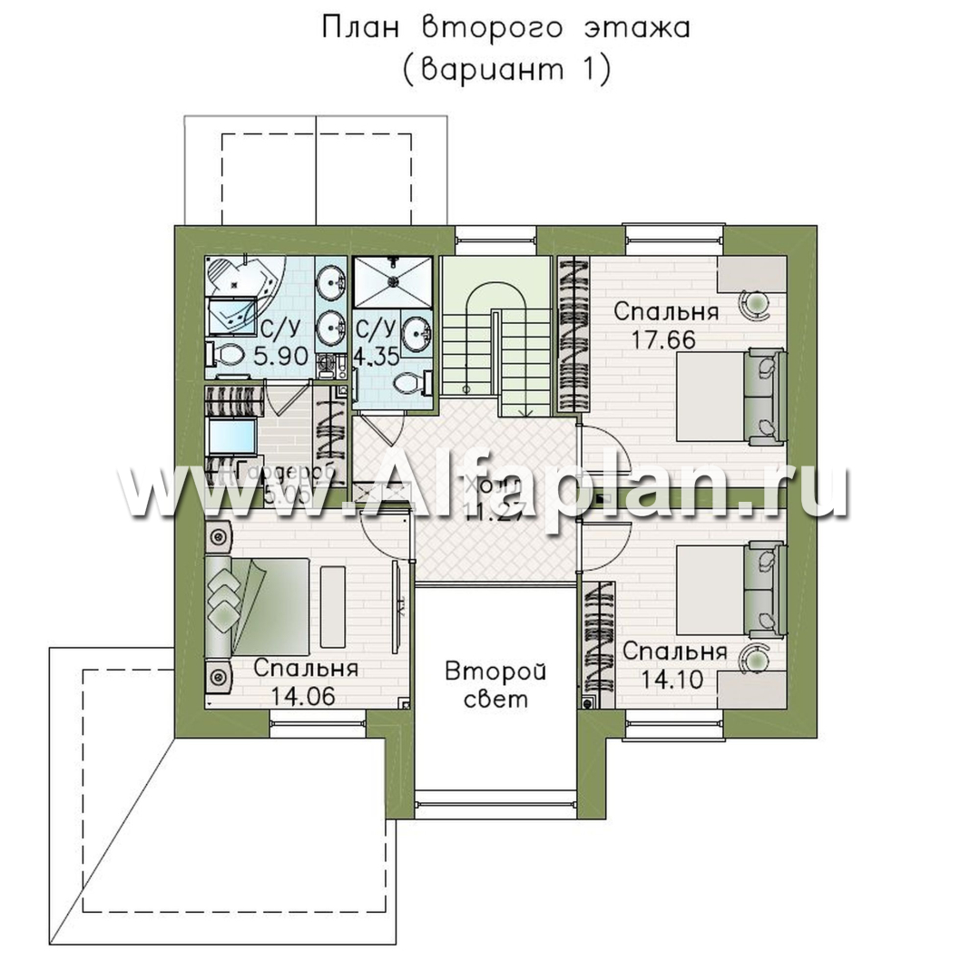 «Регата» - красивый проект дома с мансардой, планировка с мастер спальней, двусветная столовая