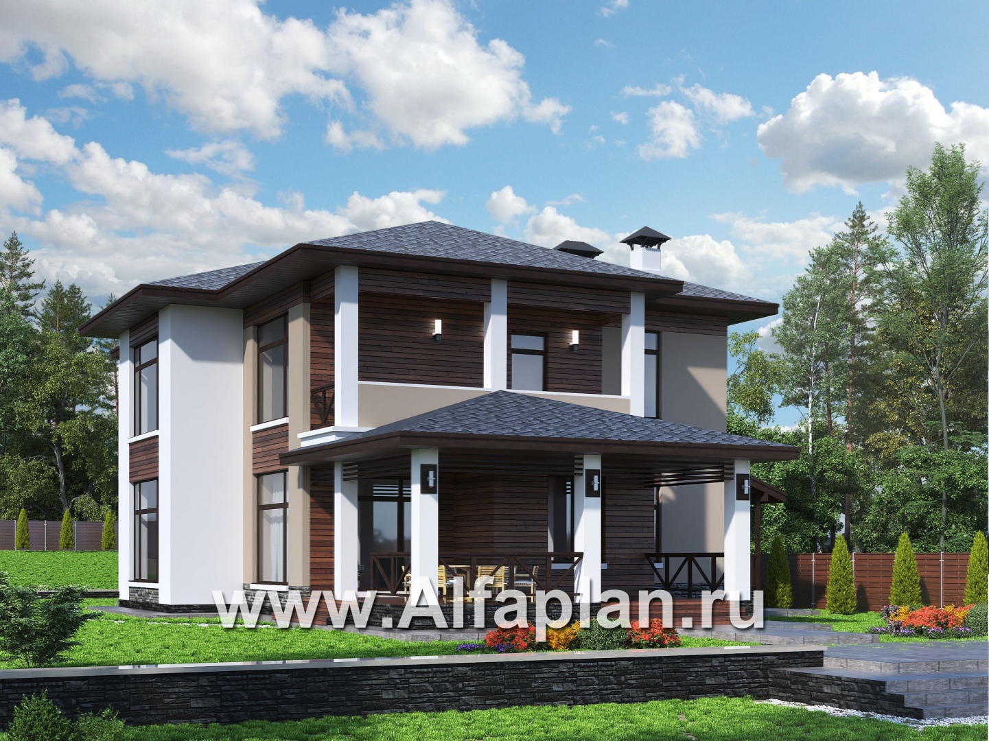 678A «Отражение» - проект двухэтажного дома, с террасой, мастер спальня, в современном стиле