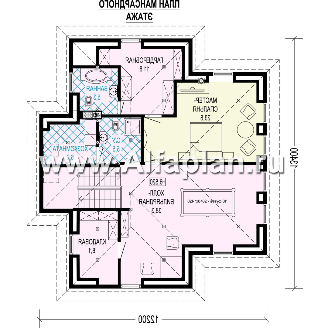 G97.1M-S Проект двухэтажного дома, с мансардой, планировка с террасой и с биллиардной, в современном стиле