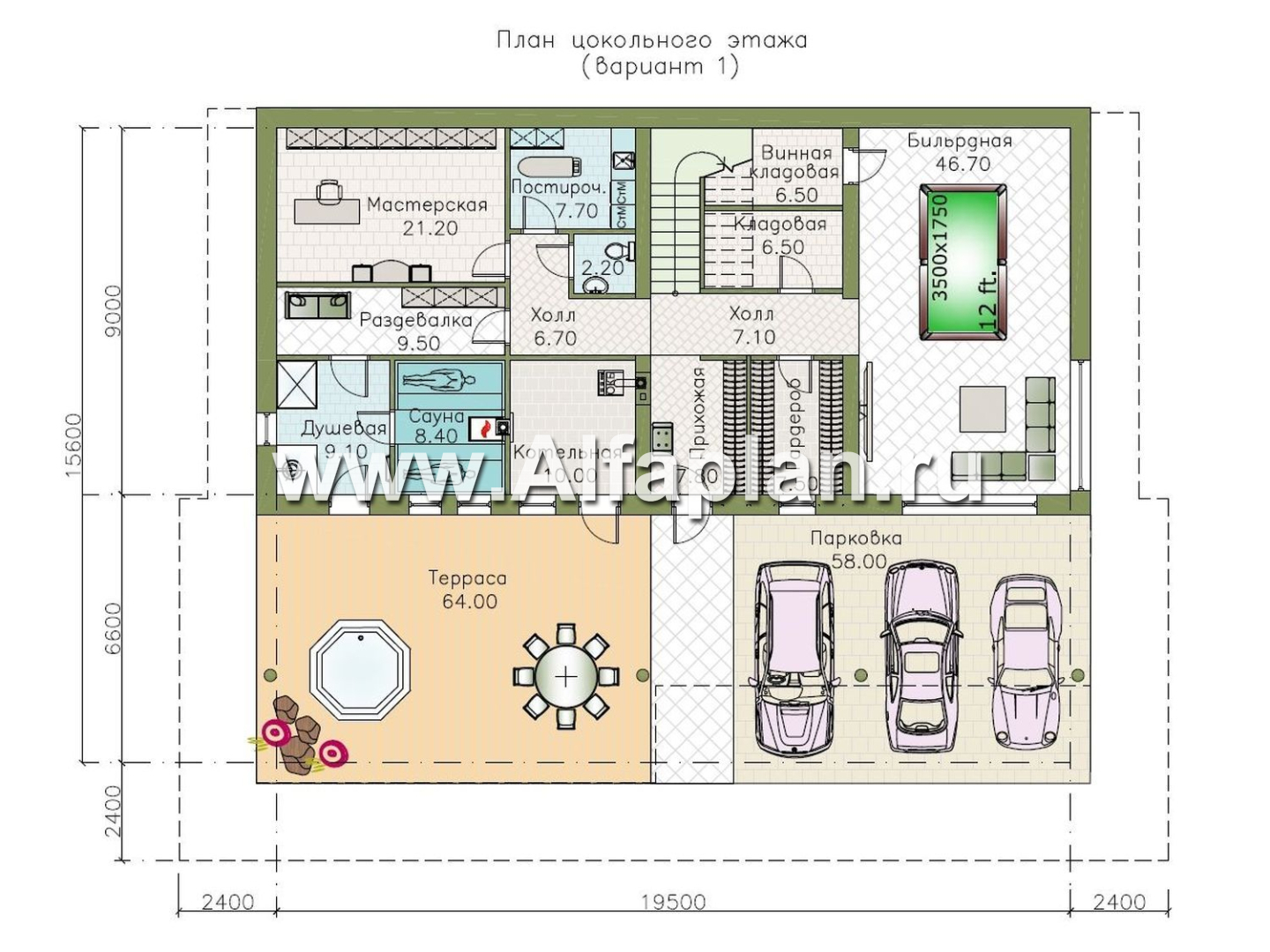 | Высота цокольного этажа | от пола до потолка | 3 м |