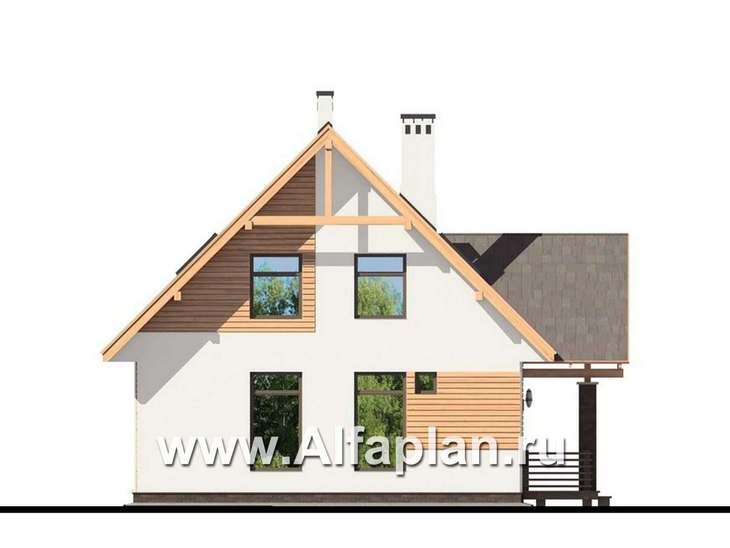 W009 Проект дома с мансардой, план с кабинетом на 1 эт, в современном стиле