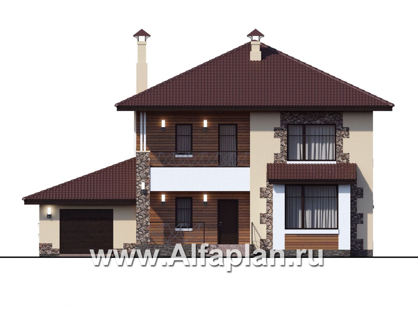 «Вереск» - проект двухэтажного дома, с эркером, 4 спальни площадью 19,5м2 каждая, с гаражом