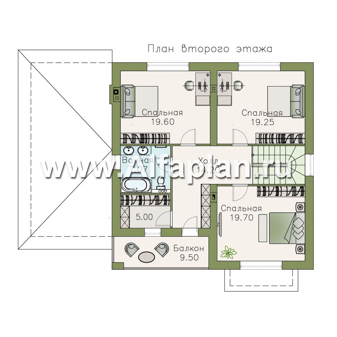 702B-S «Вереск» - проект двухэтажного дома, с эркером, 4 спальни площадью 19,5м2 каждая, с гаражом