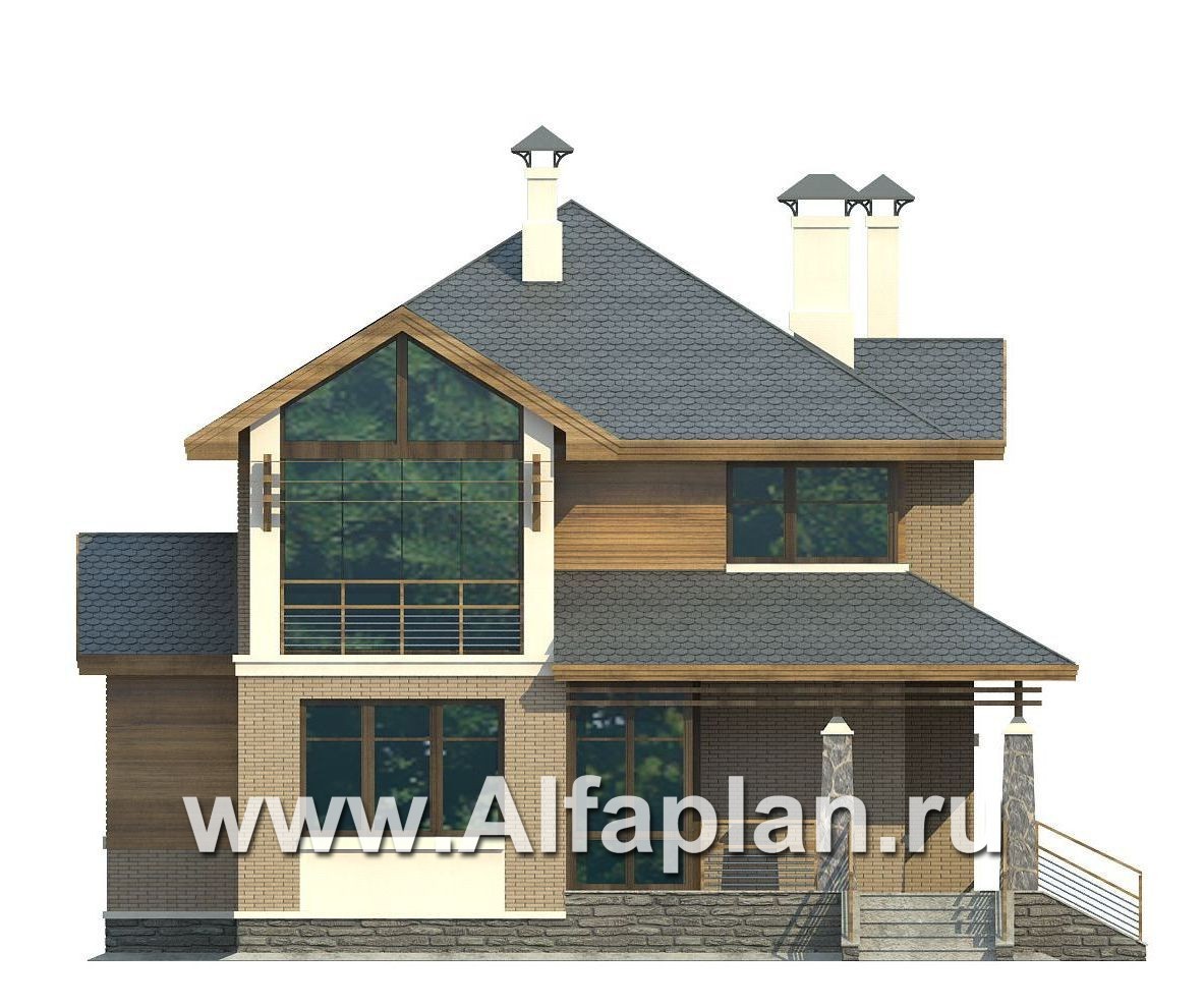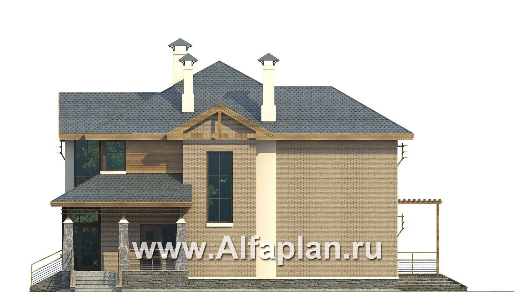 Перед вами компактный двухэтажный коттедж. Этот дом особенно будет привлекательным для любителей просторных, хорошо освещенных интерьеров, так как в доме много окон и есть угловые витражи. Такой дом бессмысленно пытаться впихнуть в плотную застройку или пытаться прятать его за высокий забор. Данный проект требует простора и живописного окружения. При этом коттедж 106В имеет компактный план, не требующий большого участка. В основании дома заложена монолитная ж/б плита. В отношении материалов, используемых в строительстве наружных стен, коттедж 106В предусматривает альтернативное решение – можно использовать как кирпич, так и газобетонные блоки. В этом отношении коттедж под номером 106В можно отнести к категории «проекты кирпичных и газобетонных домов».