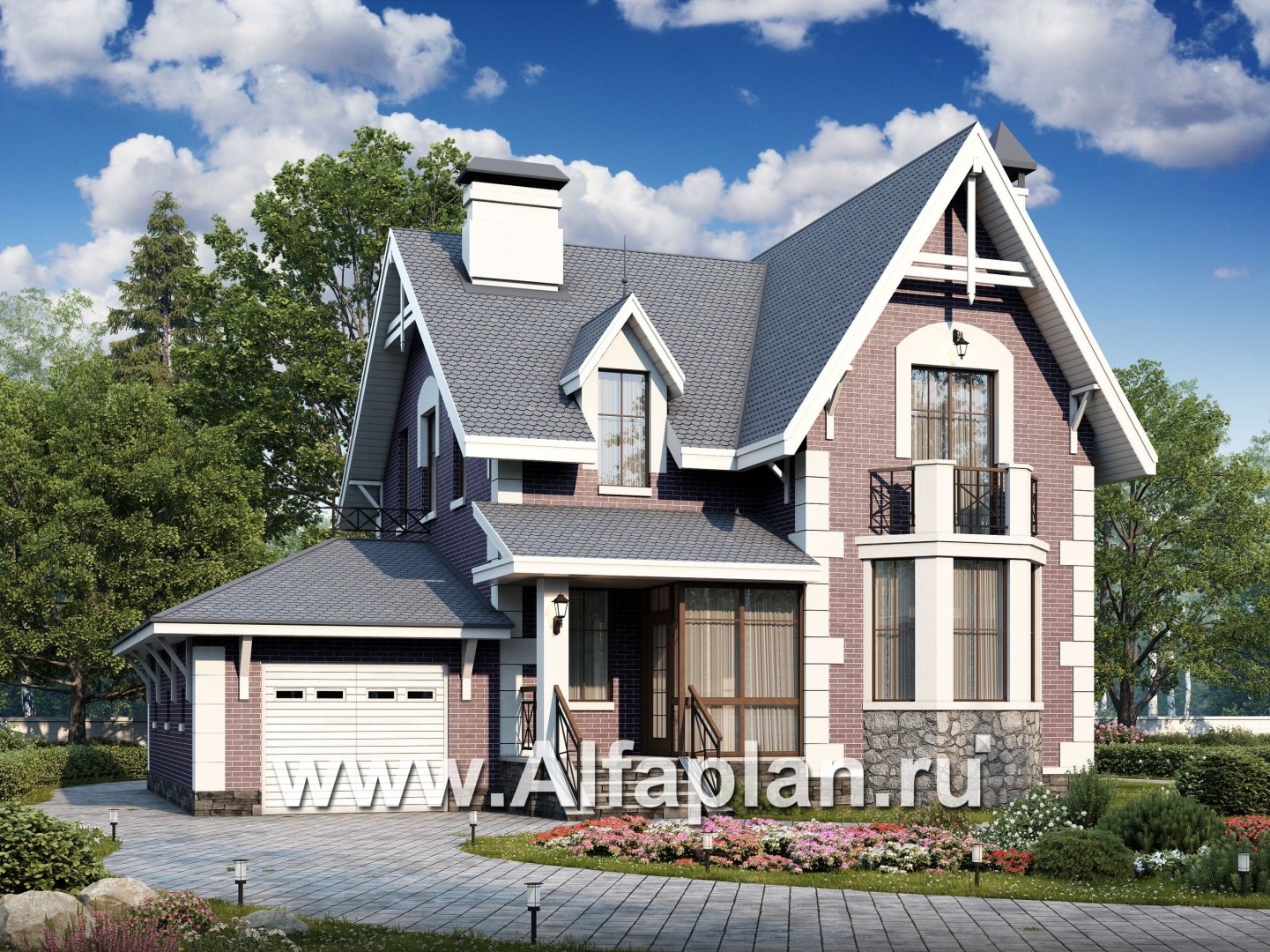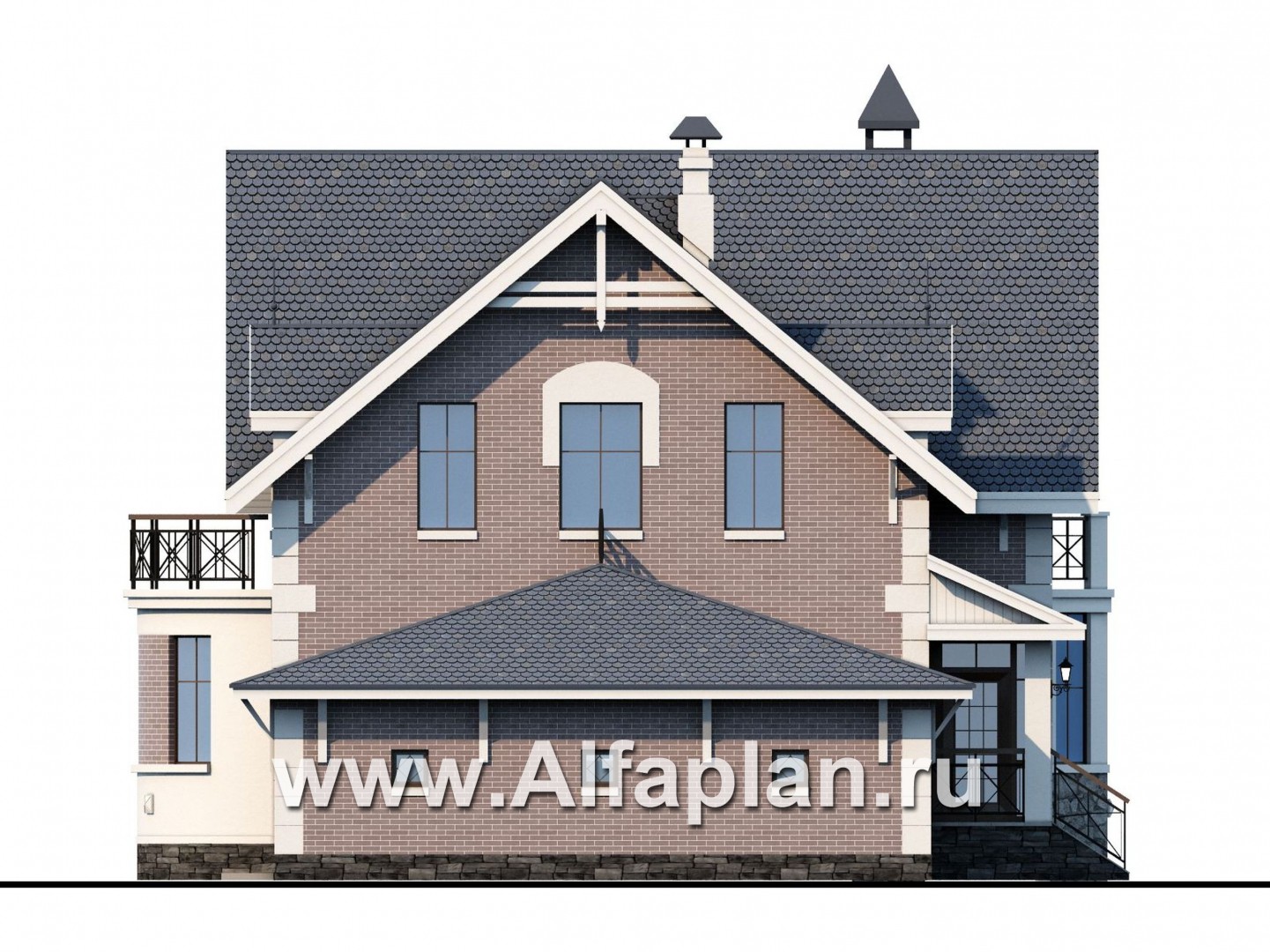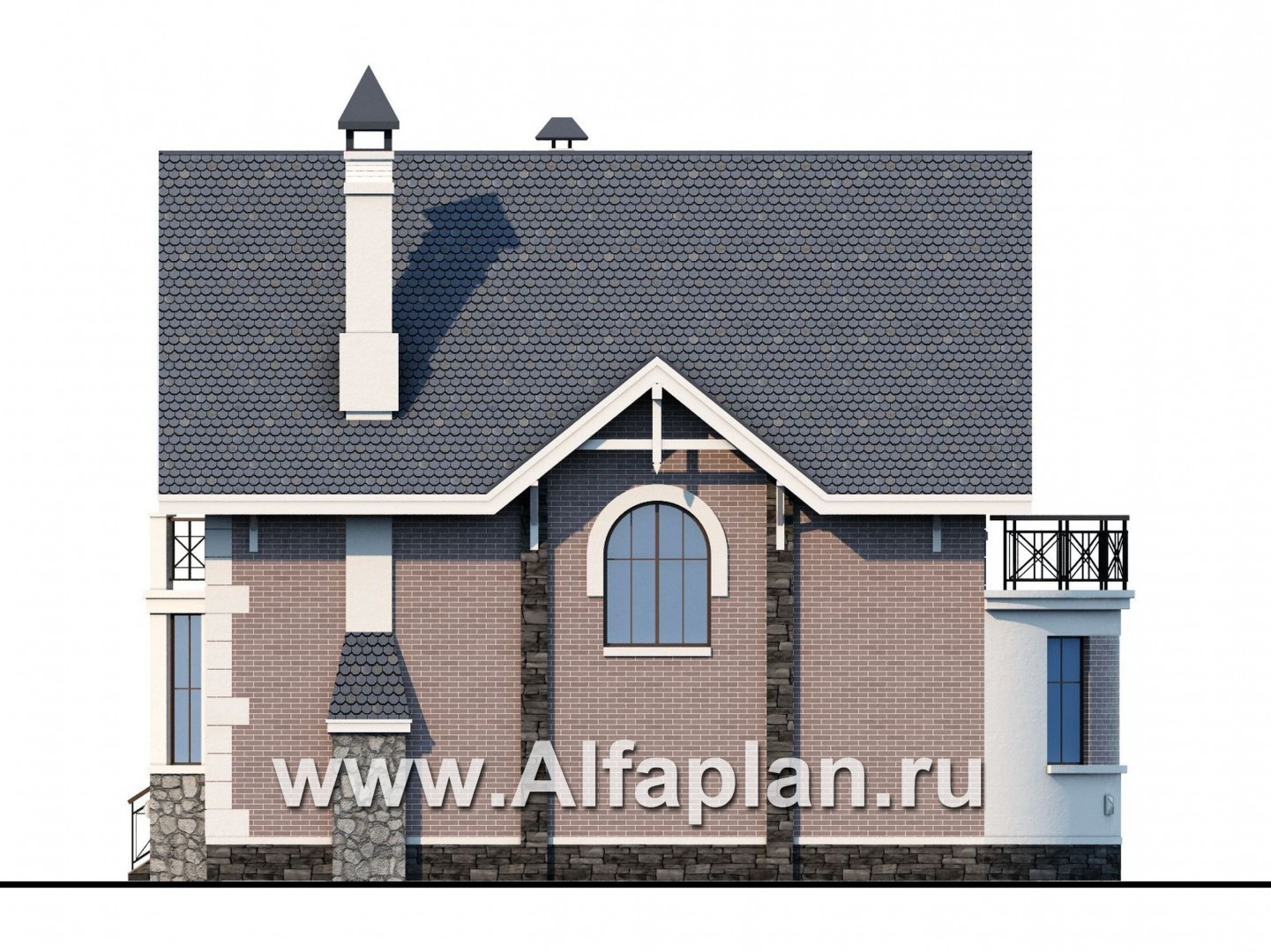 - Снаружи дом отделывается штукатуркой или лицевым кирпичом на выбор заказчика, а зона цоколя декорируется облицовочным камнем.