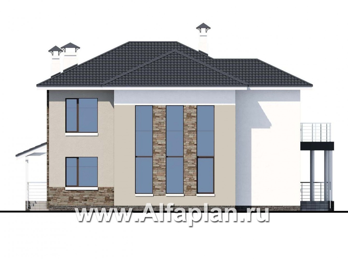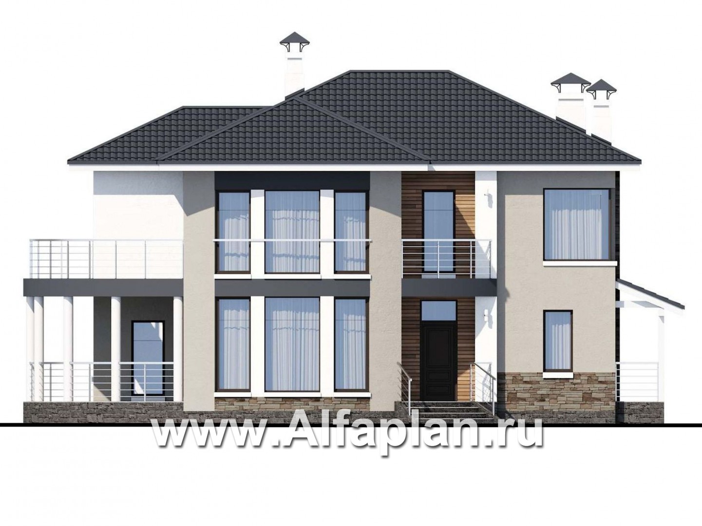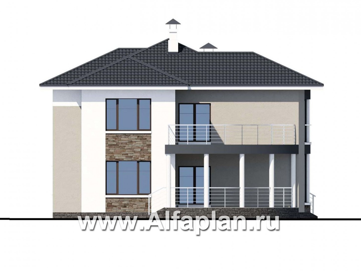 Стильный, удобный и максимально эргономичный коттедж из пенобетона для семьи из 3-4 человек. Проектом подразумевается, что все помещения в доме будут светлыми, большими и комфортабельными для постоянного проживания. Главной особенностью дома можно назвать полукруглую крытую террасу, смотрится подобная конструкция очень оригинально и необычно. Над террасой такой же полукруглый балкон, площадью более 20 квадратных метров. Здесь можно организовать зону для чаепития, рабочее место художники или же оборудовать свою мини-обсерваторию. Идей много, и все их реально реализовать.