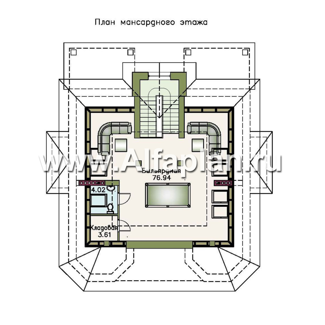 Третий этаж дома, являющийся мансардным, предназначен для бильярдной.