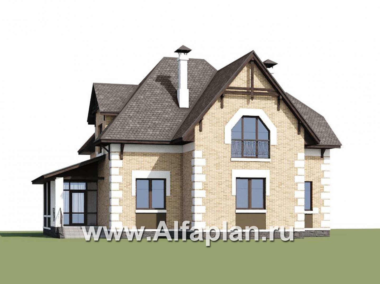 «Клио» - проект коттеджа с мансардой, с красивым эркером и с террасой, лестница в гостиной - технические характеристики