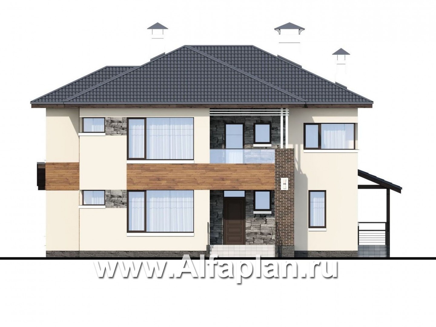Проект дома 560А-2 «Прайд» - просторный коттедж с отличным набором комнат, и красивым современным внешним видом.  Общая площадь дома 237 м2.