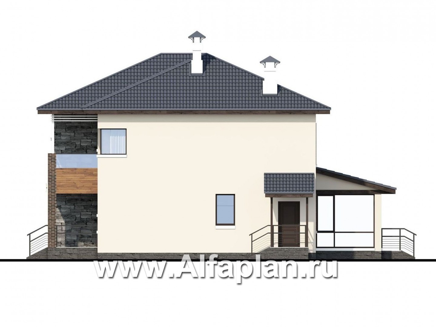 560A-S «Прайд» - проект современного двухэтажного дома, мастер спальня, с террасой и сауной