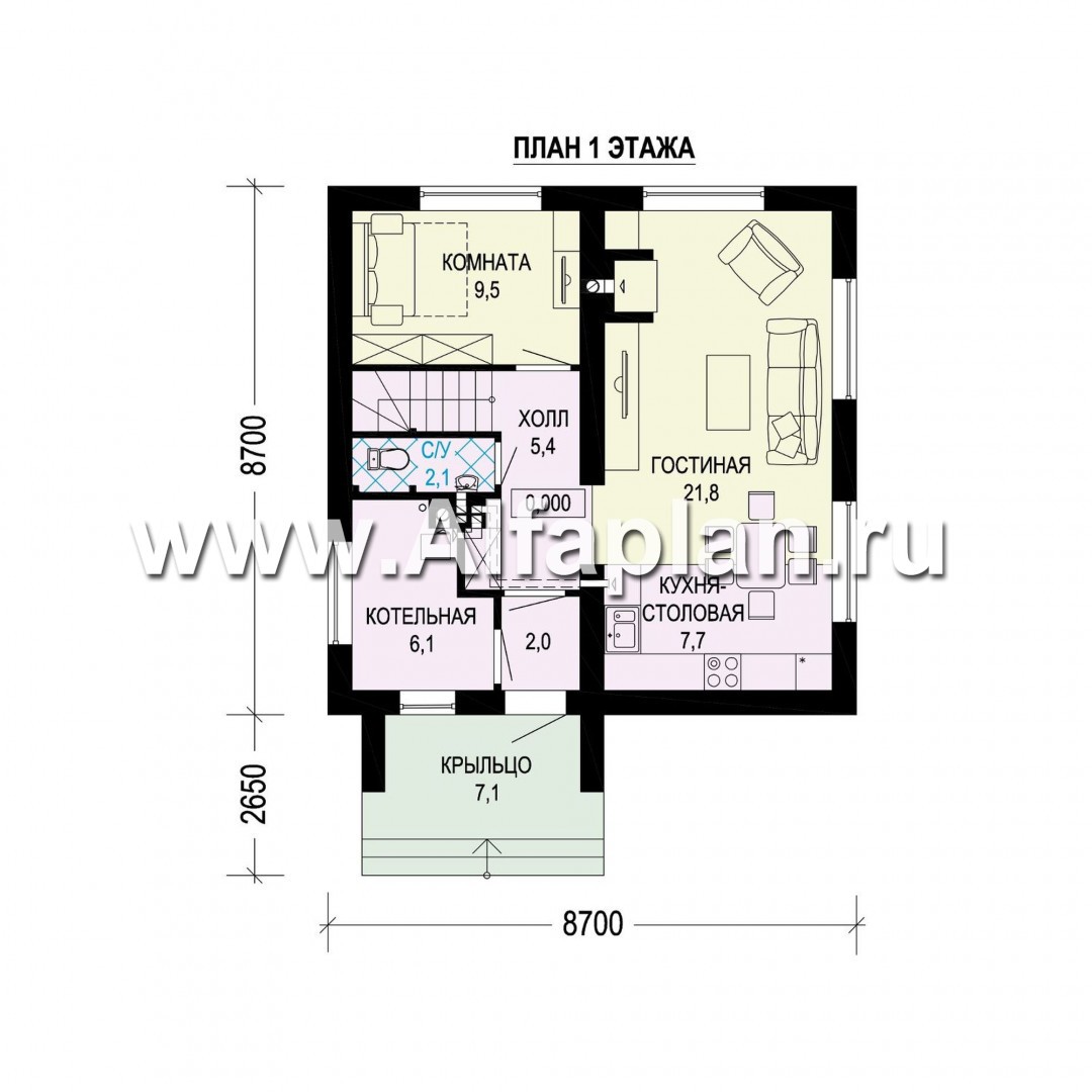 Проект двухэтажного дома из газобетона, планировка с кабинетом на 1 эт, в современном стиле