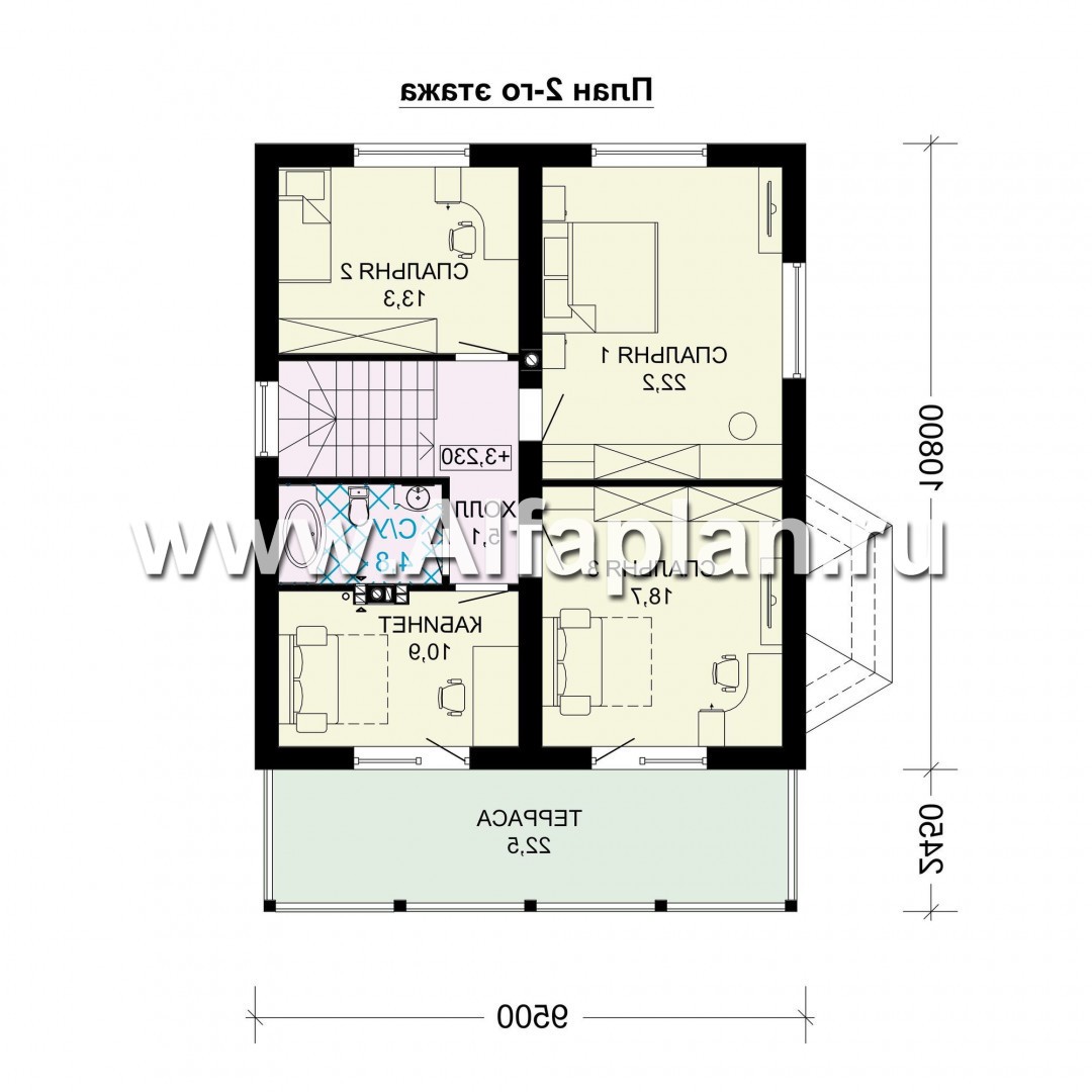 Проект частного дома с мансардой, 3 спальни, с камином и эркером, гостевая комната на 1 эт, терраса и балкон со стороны входа