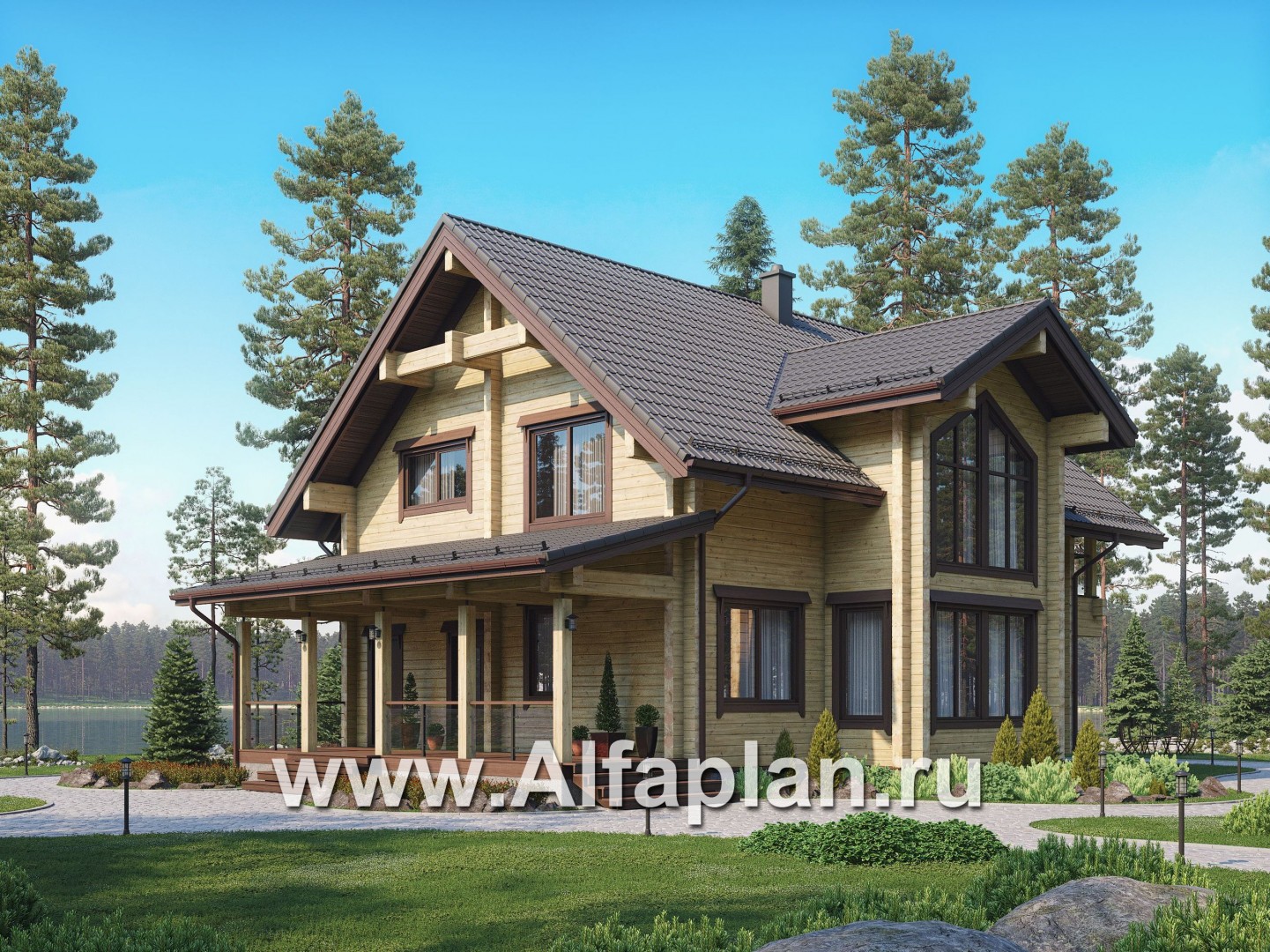 Проект дома с мансардой, из бруса, планировка с кабинетом на 1 эт и с террасой