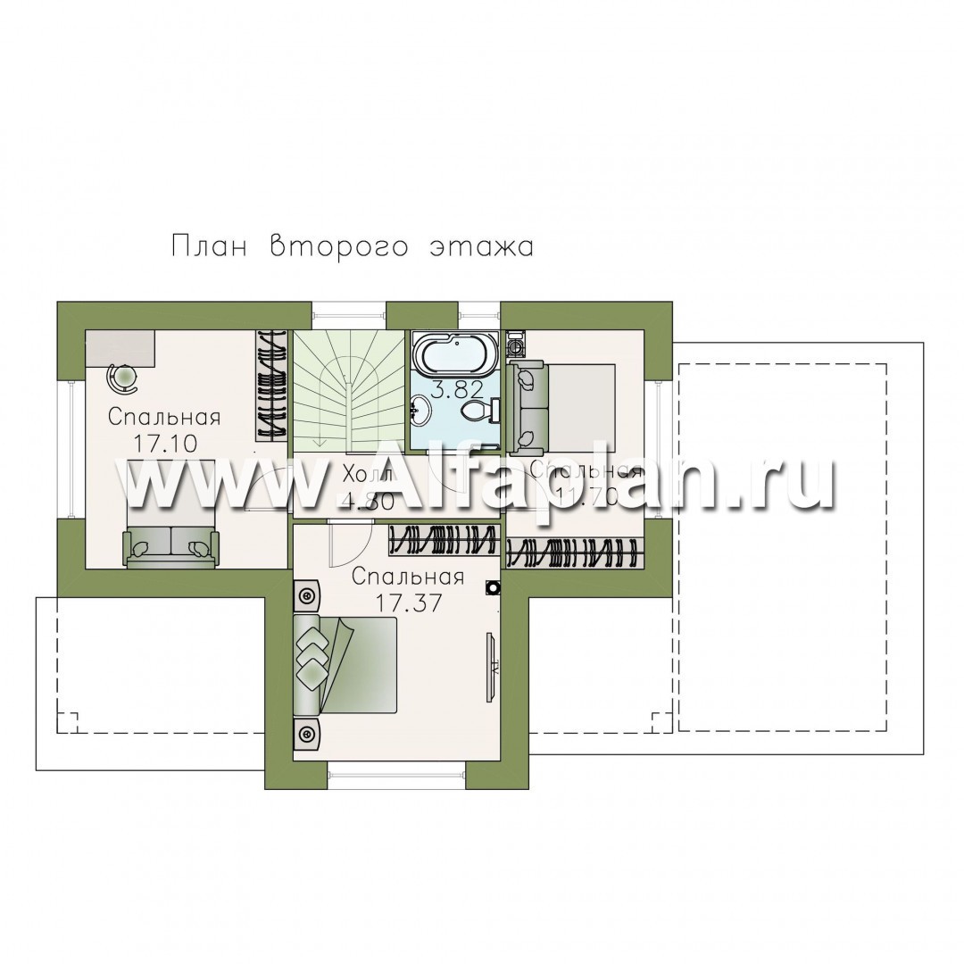 408B «Каменка» - проект двухэтажного дома из газобетона, планировка с террасой и с гаражом-навесом