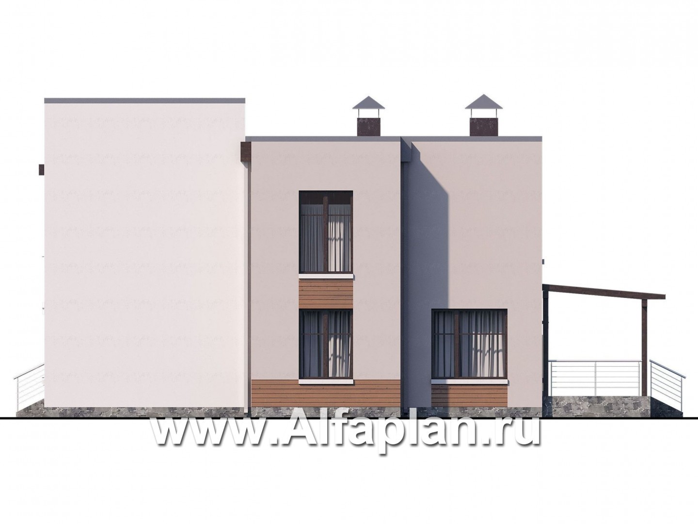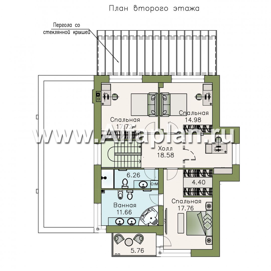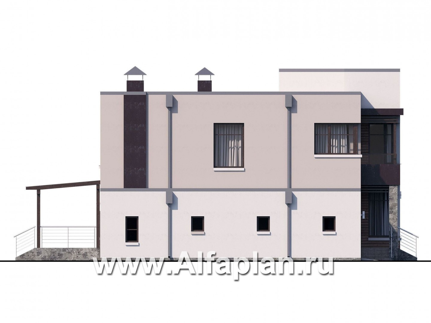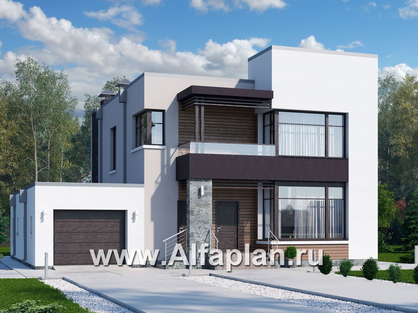 476B-S «Эвр» - проект двухэтажного дома с террасой и с гаражом на 1 авто, лестница в гостиной, с плоской кровлей, в стиле хай-тек